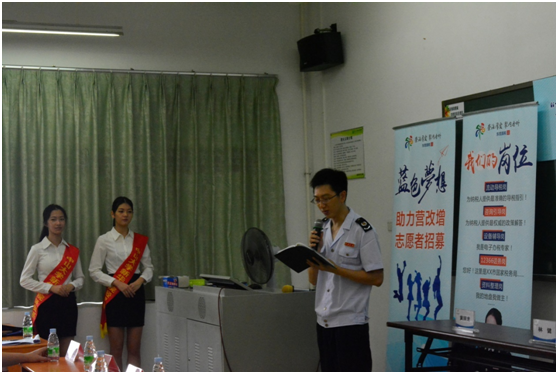 (东莞市国税局刘江华介绍“蓝色梦想”大学生志愿服务活动项目概况)
