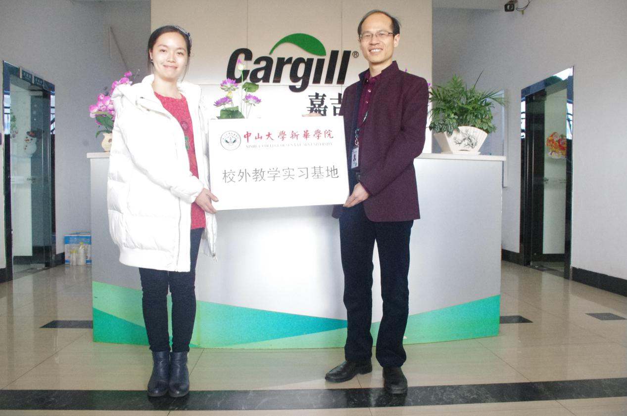 2016年12月30日,中山大学新华学院嘉吉(东莞)粮油校外教学实习基地正式挂牌。参加挂牌仪式的成员分别有嘉吉中国校园招聘华南区负责人Nikki、嘉吉中国人力资源运营及员工关系经理Starry、中山大学新华学院经贸学院国际经济与贸易专业副主任吴喜龄老师、经贸学院办公室副主任李海峰老师等。