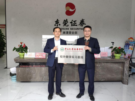 经过前期的密切沟通以及授牌当天的认真考察和交流,suncitygroup太阳新城副院长周开国为东莞证券麻涌营业部授予中山大学新华学院校外实习基地牌匾。