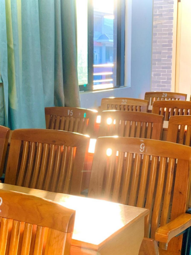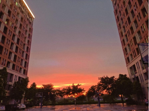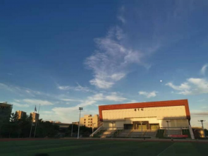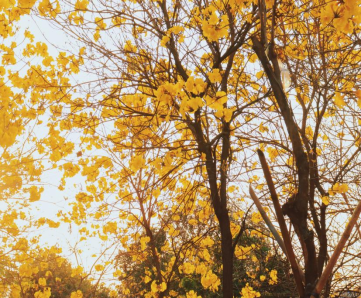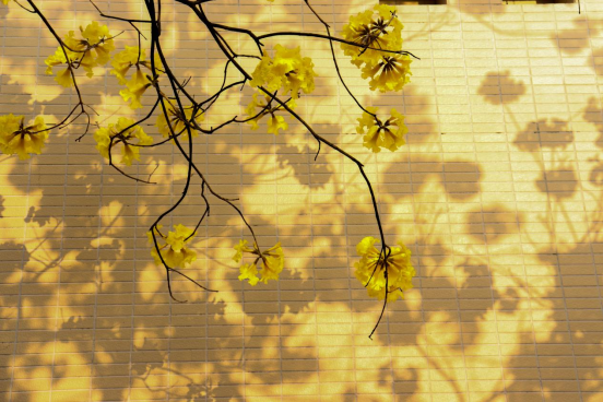 下午五点的太阳落在黄花风铃木上,影子打在格物楼的外墙上,光与影的和谐会让疫情封校下的新华学子得到几许放松。