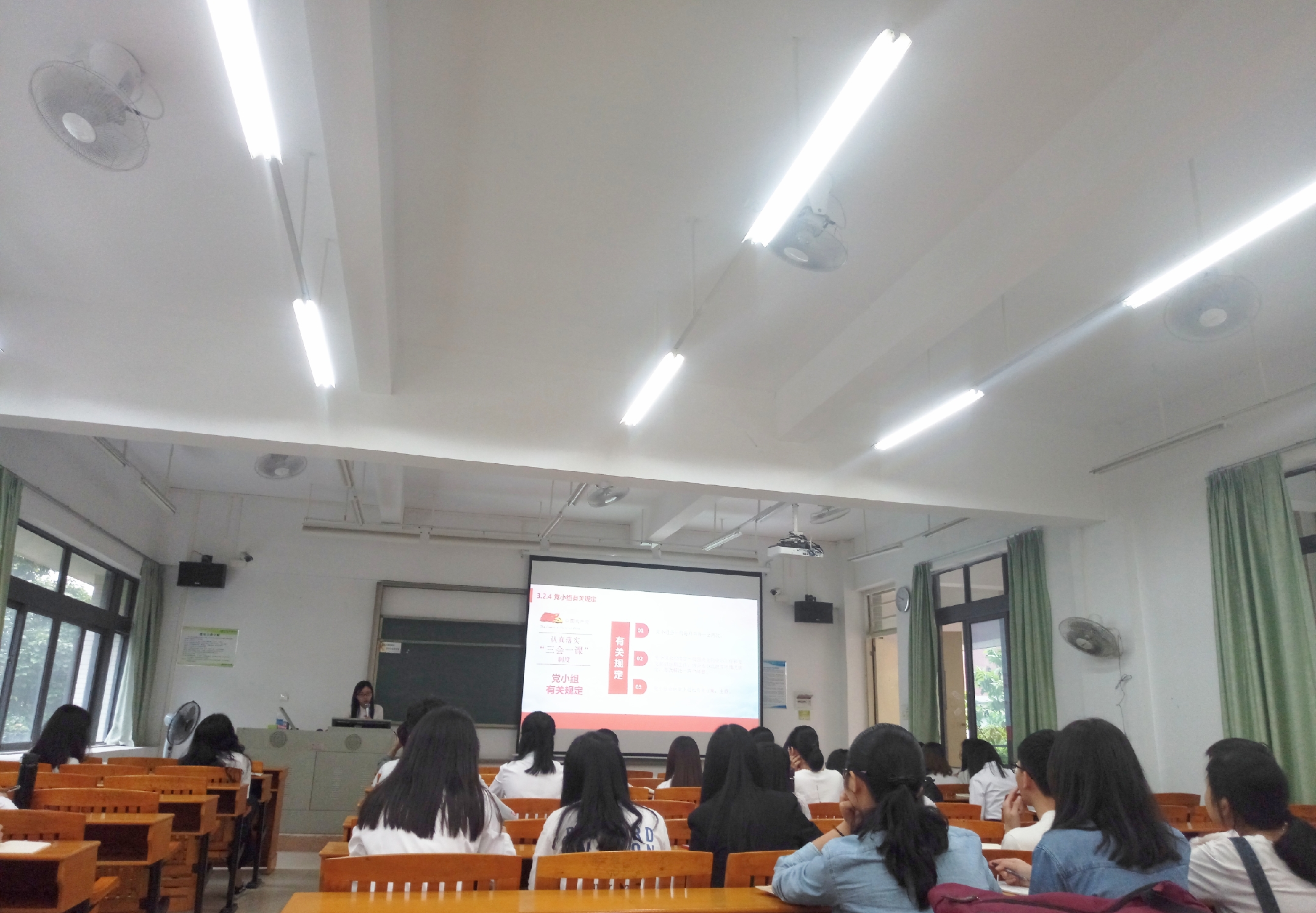 吴芬芬老师首先讲解党支部的相关工作内容,包括党务工作、党员教育管理等八项党支部基本任务,介绍我院学生党支部的组织架构。以“创新争优”活动为例,吴芬芬老师希望所有支部成员能够做好模范带头作用,以个人的积极力量影响他人。