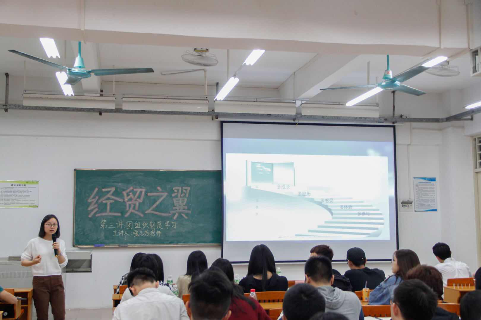 为了培养经贸学院团委新一届干事综合素质与能力,提高团委工作实效力,学院团委开展了“3+1”的“经贸之翼”干事培训:3次主题培训加1次素质拓展。