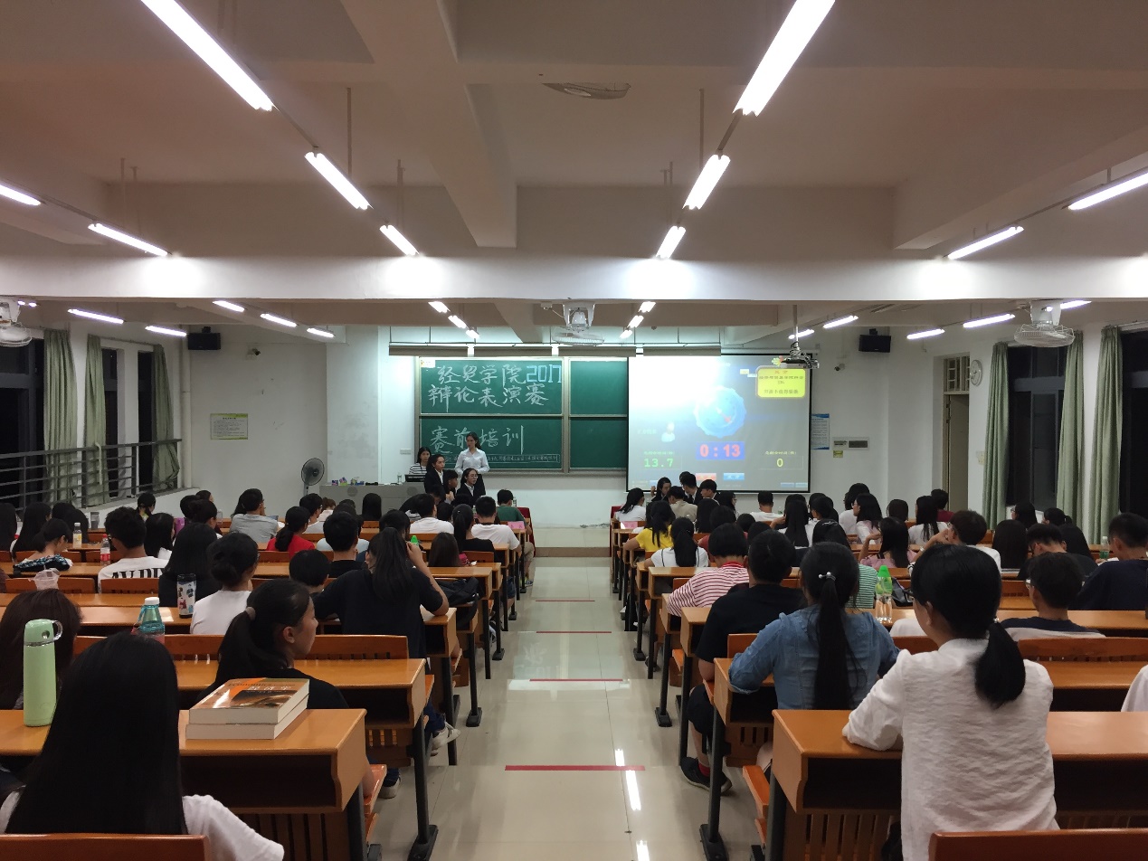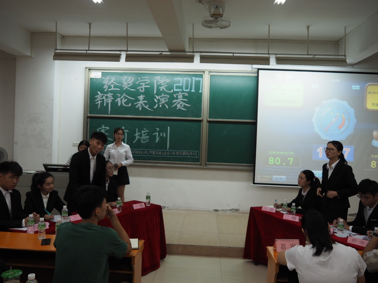 2017年10月12日晚,suncitygroup太阳新城辩论队华语辩论表演赛在东莞校区定静楼二A402拉开序幕。出席本次表演赛的嘉宾有经贸学院学生会主席许嘉倩、副主席蔡奕东、常务秘书长胡倩琳等。