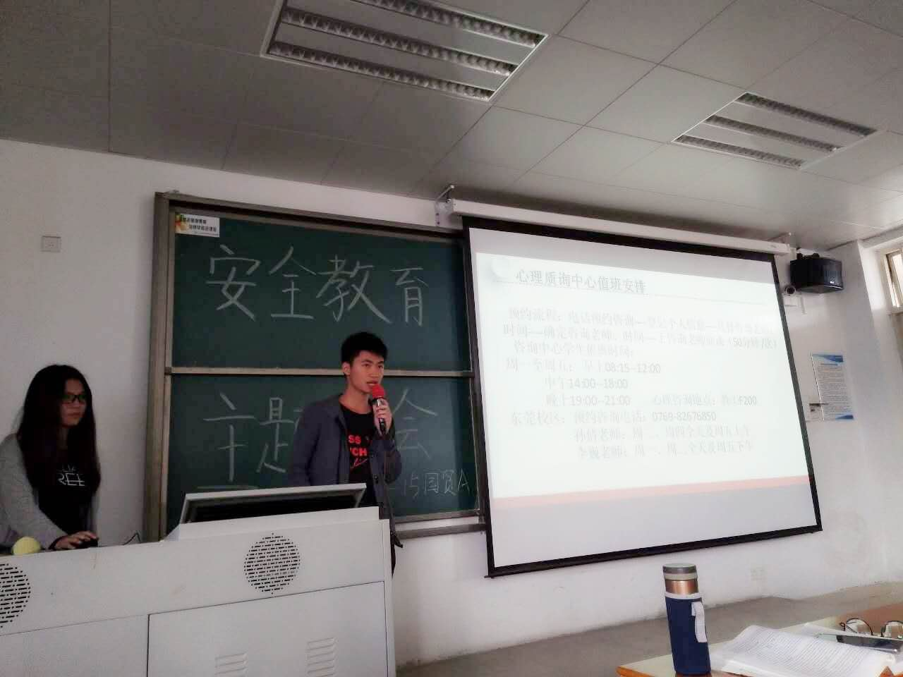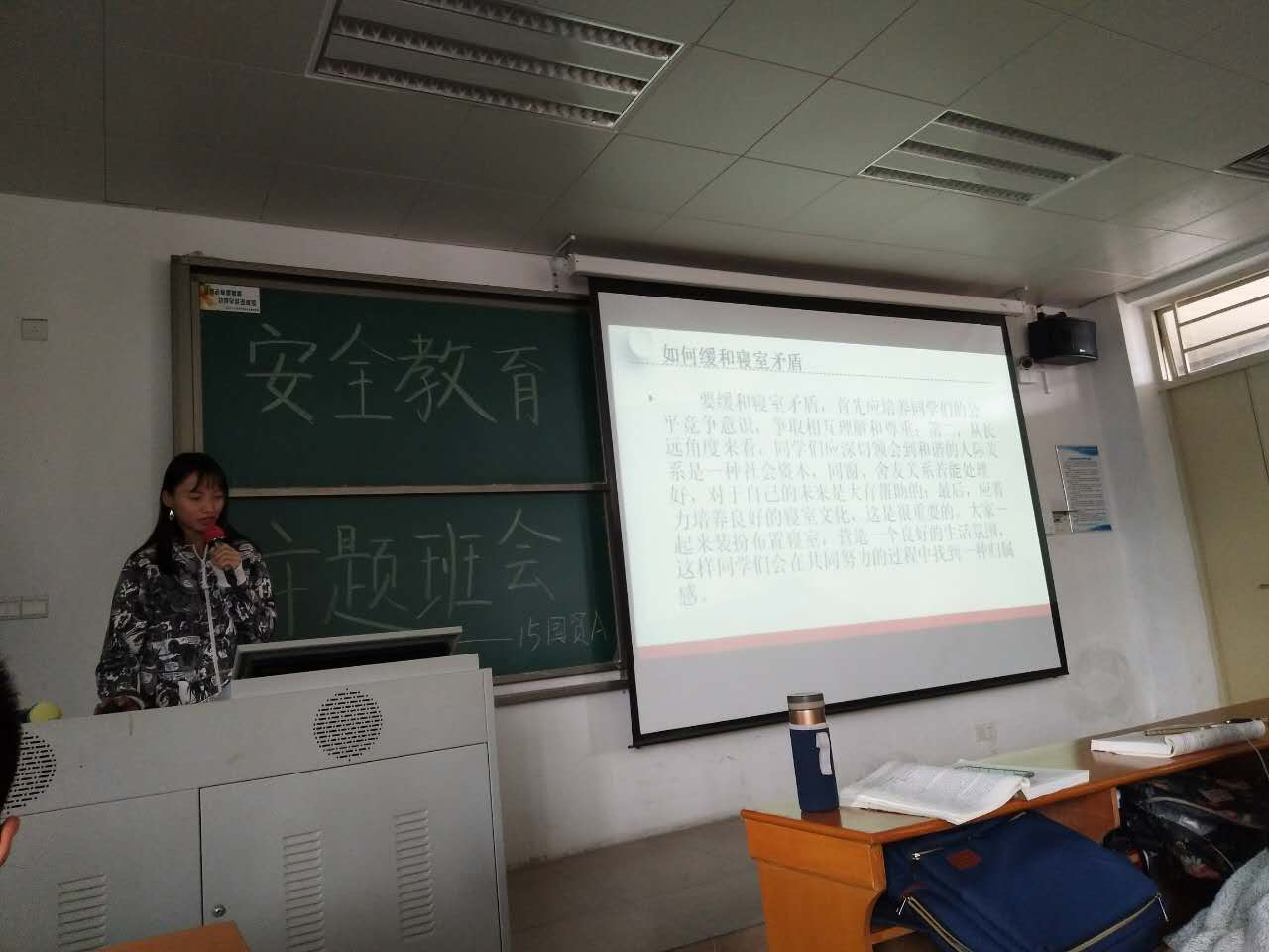 本次主题班会分别以“安全教育”、“心理健康”、“宿舍关系”这三方面为主线,通过PPT展评和观影宣传片的形式展开。