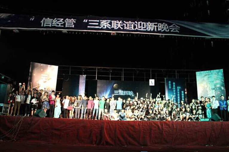此次晚会节目内容别出心裁,环环相扣,主持风格创新,是一次大胆的突破,这场活动的举办团结了信经管三系学生会的力量,也磨砺了不少工作人员,同时也感谢我系梦飞扬志愿者服务队志愿者们的辛勤工作。活动的举办,过程虽然辛苦,但是却取得了美好的结果,得到了各领导的认可,及所有观众的赞许,“信经管”三系联谊迎新晚会圆满落下帷幕。祝愿14级的师弟师妹们明天会更好!