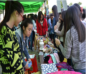 本届模拟广交会商品展活动为期三天,活动会场分为商品交易区、义演和义卖三大区。商品交易区各式商品琳琅满目、热闹非凡,吸引了众多顾客,形成了火爆的交易场面,最终宾主尽欢,其乐无穷。义演区“群星闪耀”,罗瑶带来的吉他弹唱、CD-CREW街舞社的热辣街舞、中大新华武术协会的双截棍以及来自经贸系各专业的同学们为大家带来了一场场精彩绝伦的表演,吸引了广大师生驻足观看,也大大推动了义卖区的爱心捐助;义卖区的中大新华东莞校区明信片热卖,义卖所筹集的资金将全数捐献给“壹基金”,这是本次活动温馨感人的亮点。活动开展期间,无论是商家与买家交易的热闹场面,还是义卖区爱心捐赠的感人画面,或是精彩纷呈、备受关注的义演区,都成为我院一道道绚丽的风景线。在活动第二天,寒潮来袭,对活动带来了不便,但风雨不改的商家、始终坚守岗位的工作者,以及顶着雨伞,热情依旧来到现场的同学们,却像雨巷中撑着油纸伞的丁香般的姑娘,用一朵朵的雨伞编织出了彩色的世界,为活动翻开了别样的美丽篇章。