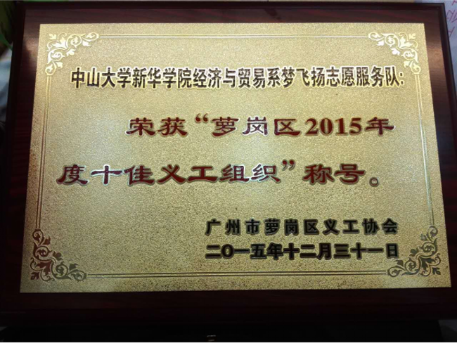 【喜讯】经贸系志愿服务队获萝岗区2015“十佳义工组织”称号(转自院网)