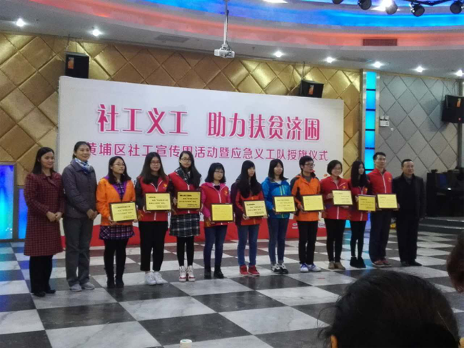 3月16日,我院经济与贸易系“梦飞扬”志愿服务队受邀参加黄埔区社工宣传周活动暨应急义工队授旗仪式,并荣获“萝岗区2015年度十佳义工组织”称号。