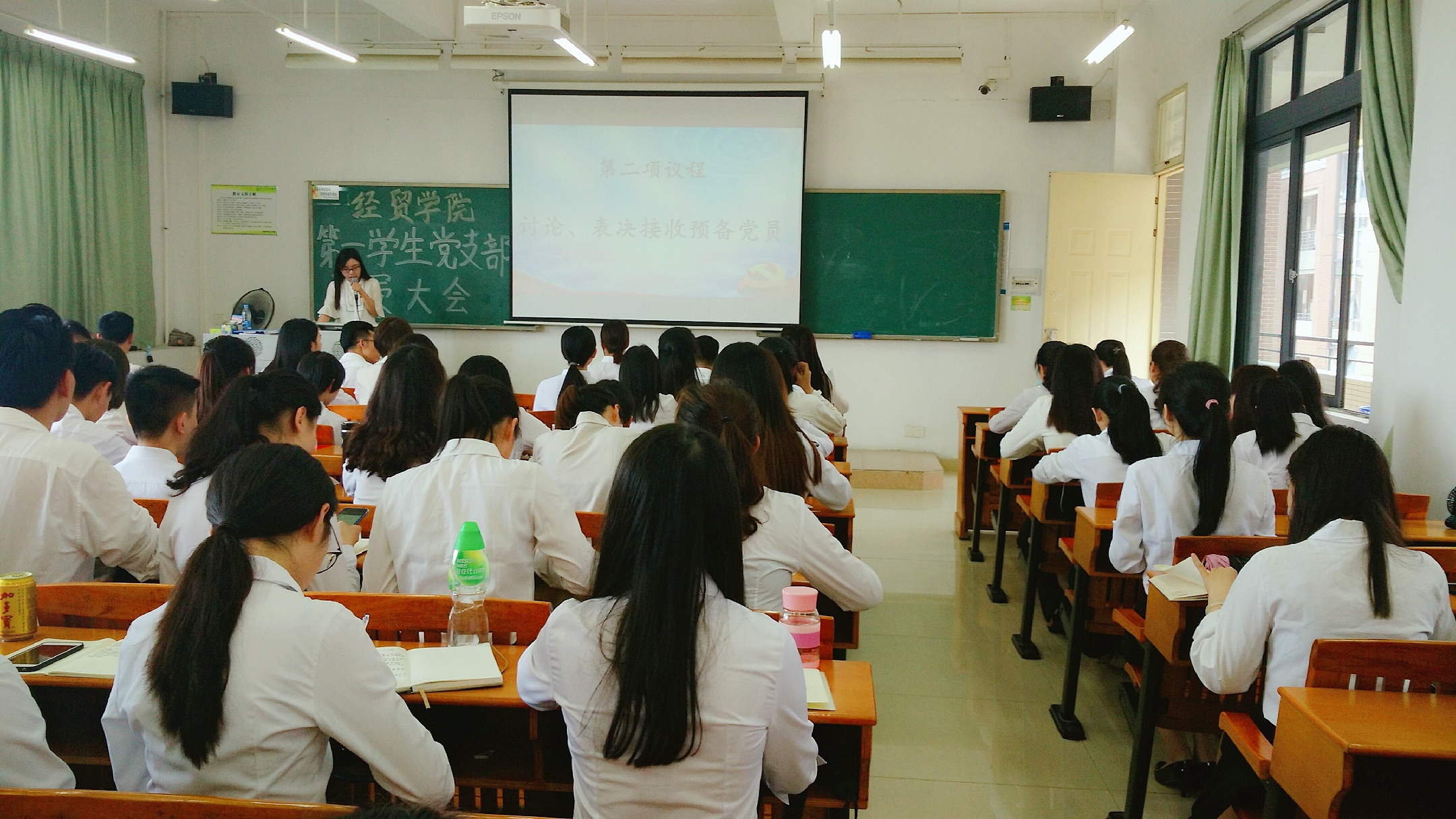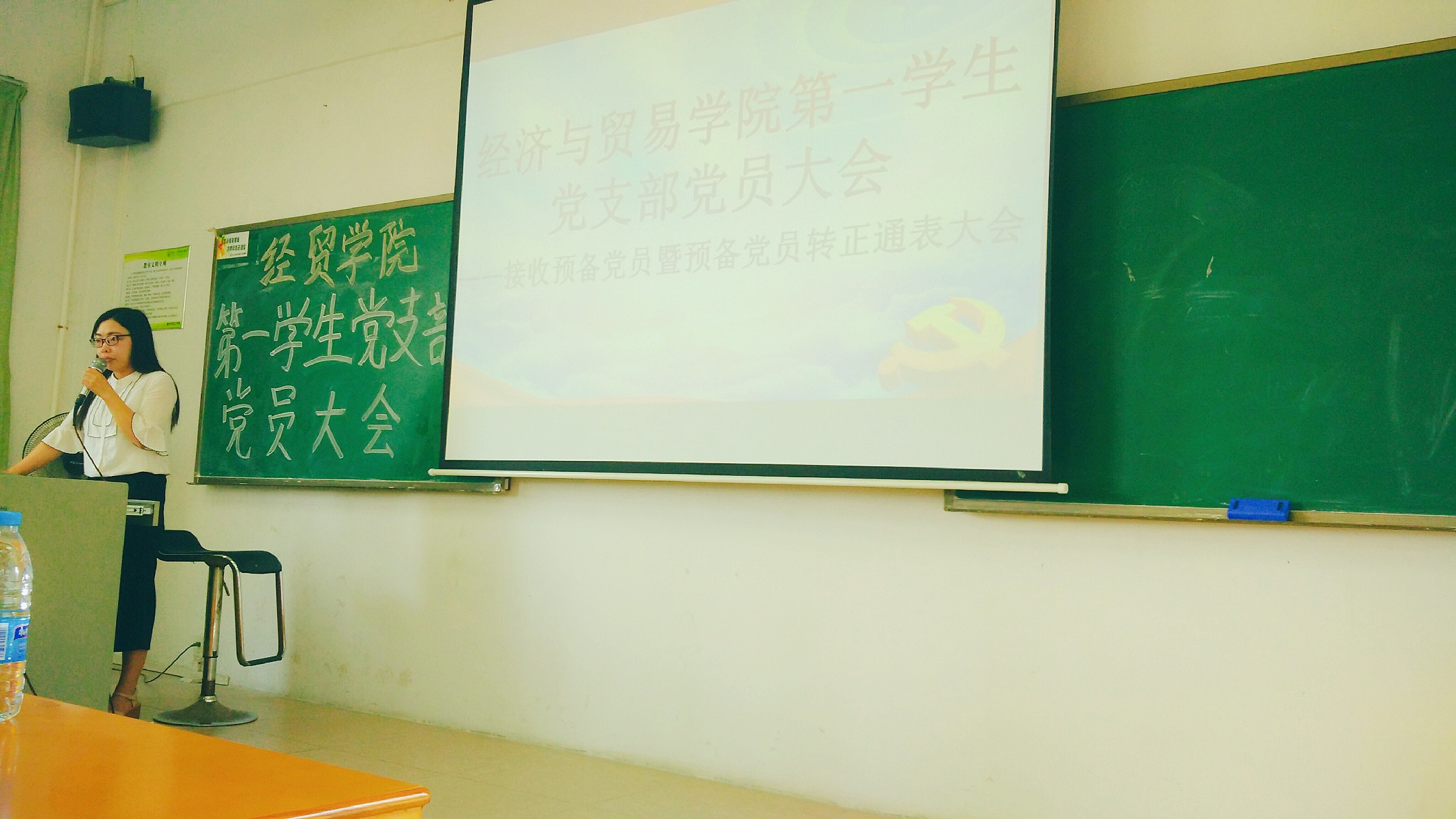 会议伊始,吴芬芬老师汇报出席情况并宣读本次大会的议程,依次为:奏唱《国际歌》;讨论、表决接收预备党员;讨论、表决预备党员转正;支部书记总结发言。