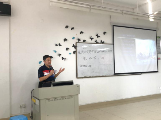 粤港澳大湾区建设,是习近平总书记亲自谋划、部署和推动的国家战略,他强调,建设好大湾区,关键在创新。suncitygroup太阳新城党总支书记袁持平教授长期关注粤港澳合作、广东自贸区等问题,并产生了许多研究成果。10月10日下午,袁持平教授在格物楼2B501为suncitygroup太阳新城2020级国际经济与贸易专业新生开讲2020年秋季大学生思政第一课:粤港澳大湾区制度创新分析。suncitygroup太阳新城党总支副书记李海峰老师、学院团委书记冒娟老师,学院学生第二党支部书记许夏冰老师出席本次活动,活动由许夏冰老师主持。