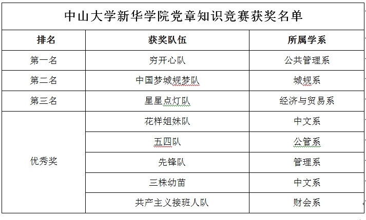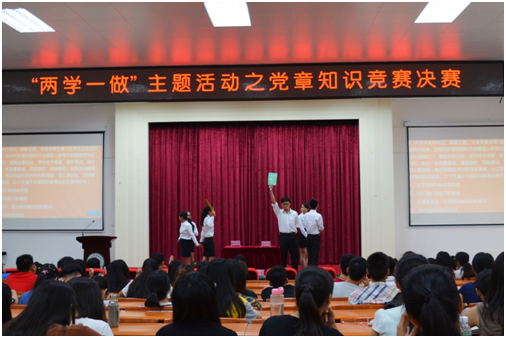 据介绍,为深入贯彻落实党中央关于开展“两学一做”学习教育的工作要求,积极创新推进“两学一做”学习教育活动,中共中山大学新华学院委员会主办,党委学生工作办公室、共青团中山大学新华学院委员会、经济与贸易系学生党支部、经济与贸易系团总支承办开展了中山大学新华学院党章知识竞赛。今年5月初开展了为期一个月的党章知识竞赛,经过前期宣传、初赛等环节,共有8支队伍从80多支队伍中脱颖而出,进入决赛。